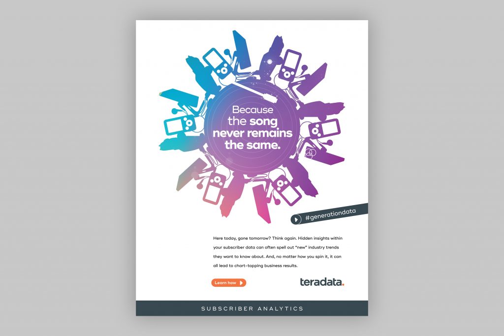 The Campaign: Demonstrating technical product capabilities simply wasn’t cool enough for Apple, and we knew it. We needed to not only show them in action, but also present them as a business opportunity. Researching new music and market trends, along with Apple user forums, we focused on the then resurgence of vinyl sales … and turning old classics into new gold. The pitch evolved into uncovering an entirely new iTunes category based on advanced subscriber analytics and more precisely matching user interests to expand sales. The data science team also prepared a live demo to show in real-time how Teradata identified this new market — which could be applied to other opportunities, as well.